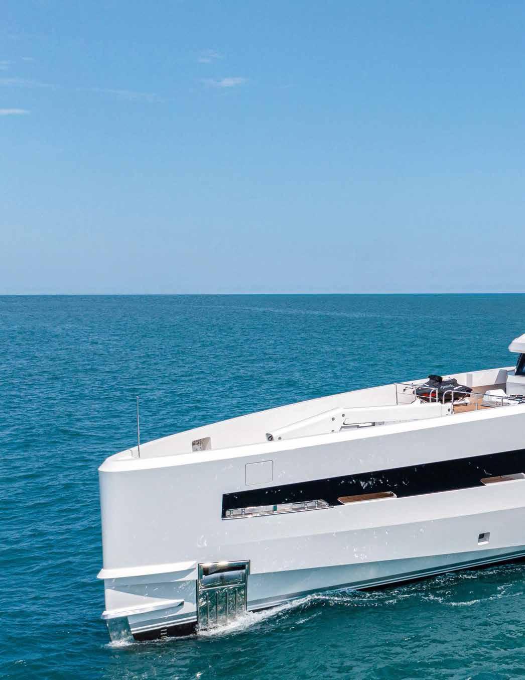 1K - MANGUSTA Length 33.48m, Draft 1.35m, Beam 7.1m, Build 2013/2022, Guests 6, Cabins 3, Crew 5, Range 420 NM. Price € 6,950,000 u Northrop & Johnson www.northropandjohnson.com