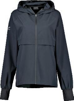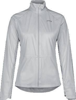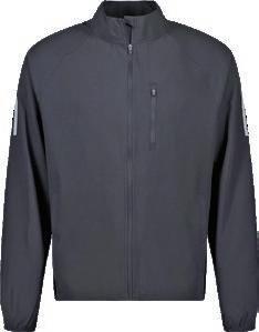 Säänkestävä, joustava ja kevyt juoksutakki, jonka hihassa on vetoketjullinen tasku ja kelloikkuna.
