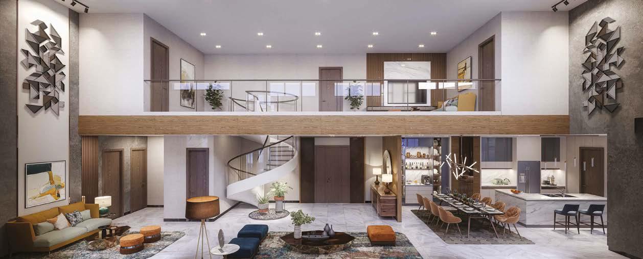 Residents enjoy premium access to Dubai’s modern and cultural landmarks. The mixed-use development includes retail spaces, high-end dining, wellness centres, and a host of other amenities. The grand entry, leading to a magnificent salon, sets the tone for the luxury within. The plaza level features restaurants and a bar, while the second floor offers a specialty restaurant and meeting rooms. The third floor boasts an all-day dining area, gym, kids play area, and pool deck. The fourth floor houses a lavish spa for ultimate relaxation.