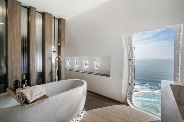 With 139 rooms and suites in beige and crème tones, it includes luxurious furnishings, local art and private plunge pools or spacious balconies for guests to peacefully admire the scenic views of the Aravalli range. It also o ers a banquet hall, ballroom, spa, fitness center and outdoor pool, making it ideal for luxury stays and destination weddings. This project has won several awards, including the International Property Awards Asia Pacific Award 2024 – 2025 for Best Hotel Architecture