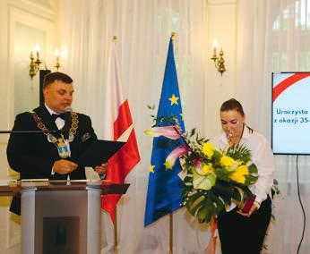 Gratulacje z okazji 35-lecia samorządu na ręce burmistrza Czeladzi Zbigniewa Szaleńca złożyli poseł Barbara Dolniak, członek Zarządu Województwa Śląskiego Rafał Adamczyk, radna wojewódzka Aldona Węgrzynowicz i przewodniczący Rady Powiatu Będzińskiego Jan Powałka Okolicznościowe przemówienie wygłosił burmistrz Zbigniew Szaleniec, który przedstawił nie tylko rys historyczny narodzin demokracji w kraju, ale także mówił o rozwoju Czeladzi, kształt o w a n i u s i ę s a m o r z ą d n o ś c i l okalnej, zmianach jakie zaszły zarówno w warstwie komunalnej, jak i społecznej, a także o aspiracjach i dążeniu do nowoczesności