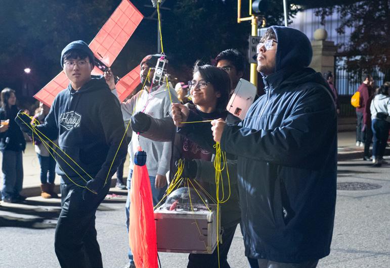 Everyone put forward their best efforts to prepare for the parade, with planning efforts starting weeks in advance. The department felt the enthusiastic support from staff, faculty, and students. Students prepared to display the many applications of Aerospace Engineering through past student projects, a weather balloon and stratospheric payloads exhibited by the ballooning team, and even a parachute candy distribution system.