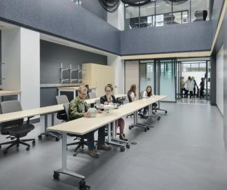 In and around the main stairwell in Akerman Hall, Professor Consortium. This initiative offers students opportunities atmospheric science and engineering.