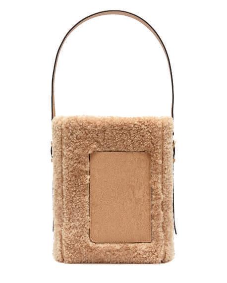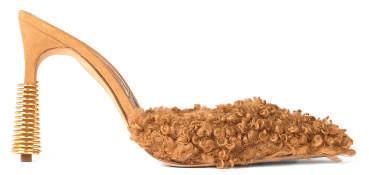 Diosa Mule Teddybear in Eco fur, with golden metal spring around the heel. ricagno.com