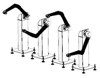 This configuration includes up to 4 arms equipped with 3 axes each for a maximum total of 12 axes, installed in sequence and all managed by a single control unit. Each arm can move independently and perform up to 4 different applications in sequence.