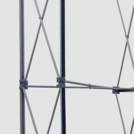 Soluzione leggera dedicata all’allestimento di stand in molteplici composizioni diverse; realizzato in alluminio con componenti in acciaio, è facile da montare, smontare e trasportare. Le pareti possono essere allestite con banner leggeri.