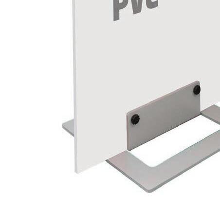 Leggio con base e ripiano in PVC-HD e profilo di supporto in alluminio larghezza cm. 15. Nella parte anteriore è possibile fissare cornici klik-klak per l’esposizione di messaggi pubblicitari.