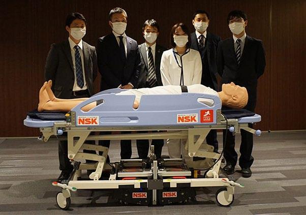 NSK hat sich bereits an der Entwicklung mehrerer Serviceroboter für medizinische Einrichtungen beteiligt. In einem aktuellen Projekt arbeitet das Unternehmen in einer Initiative der japanischen Regierung mit, die den Einsatz von Robotertechnologie in Krankenhäusern beschleunigen wird. Konkret wurde ein motorisierter Assistenzroboter für den Patiententransport entwickelt – im Dialog mit den Pflegekräften.