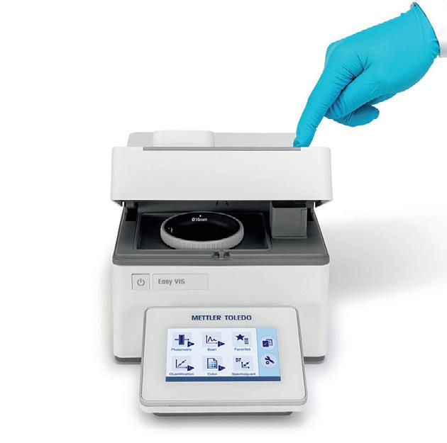 Das Easy VIS Spektralphotometer von METTLER TOLEDO analysiert flüssige, transluzente Proben auf drei Eigenschaften: optisches Spektrum, Farbe und Wasserparameter. Je nach Bedarf untersucht das Messinstrument alle drei Parameter oder eine Auswahl dieser Möglichkeiten. Mit Easy VIS beschleunigen Anwender ihre Prozesse und verbessern zugleich die Qualität der Ergebnisse. Das spart Geld, Zeit und Platz im Labor.
