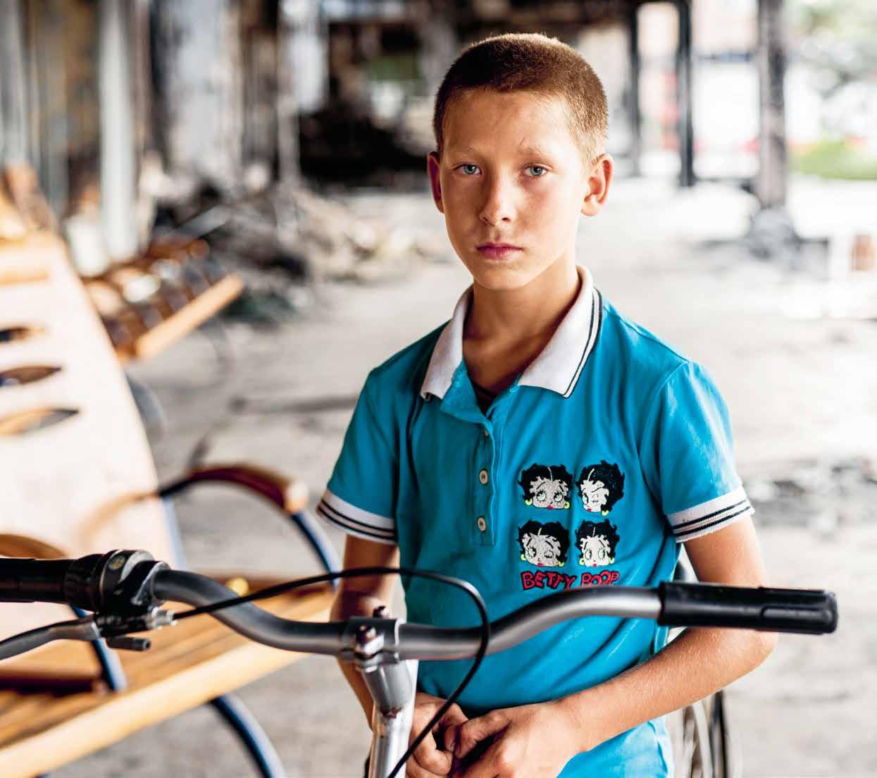 Die Fotos zu diesem Schwerpunkt stammen von dem Fotografen Eric Vazzoler, der Kinder und Familien in der ukrainischen Hafenstadt Mariupol porträtiert hat. Die Bilder zeigen auf beeindruckende Weise den Versuch, trotz Leid und Zerstörung in eine Normalität zurückzufinden.