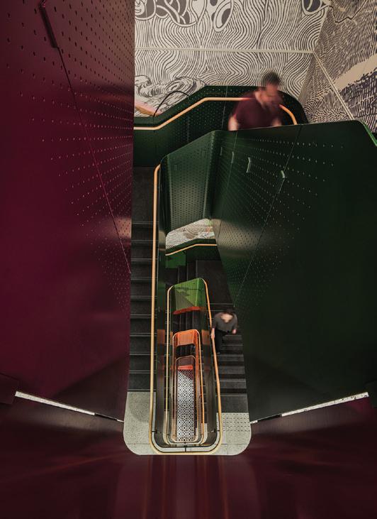 Their density and rhythm suggest braille, a subtle reminder that sight-impaired users can engage with the work and the facility, and reinforcing the project’s inclusive spirit. Materiality supports meaning.