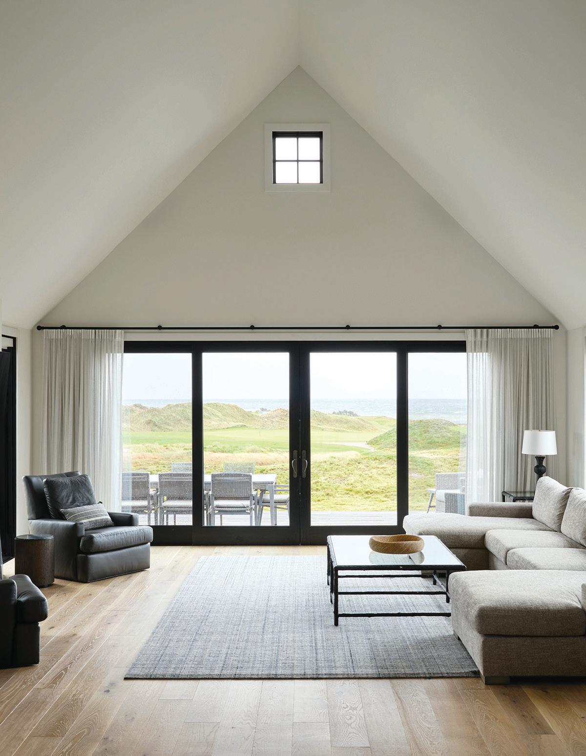OPPOSITE Cabot Cliff’s seasonal holiday homes are tucked into the grassy dunes adjoining the celebrated links course. ABOVE The interiors of the houses include full-height gabled living areas. Doors and windows are oriented to provide privacy as well as sweeping views.