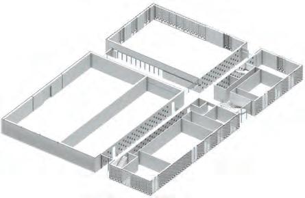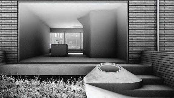 In 2018, a two-stage international competition was conducted to create a Holocaust museum on the site. A winning entry was selected which minimized its above-ground presence by extending four storeys underground. However, it soon became clear that because Babyn Yar was the site of mass murder, the construction would be disturbing what Jewish tradition viewed as cursed ground. The project was shelved. Through his involvement with the Babyn Yar Holocaust Memorial Foundation, Van Pelt suggested that a more appropriate response could be to build a synagogue an active place of worship. He recommended Manuel Herz as the designer, based on the young architect’s innovative synagogue in Mainz, Germany. Herz’s design hovers atop the ground, supported by shallow strip foundations, and folds away literally when not in use. Jews selfidentify as the “People of the Book,” and Herz combined this idea with the magical wonder of his infant son’s pop-up books. The building’s slab-like form is manually opened by the congregation, unfolding to unveil the central Bimah (a reading platform for the Torah), benches, and a balcony. An open-air