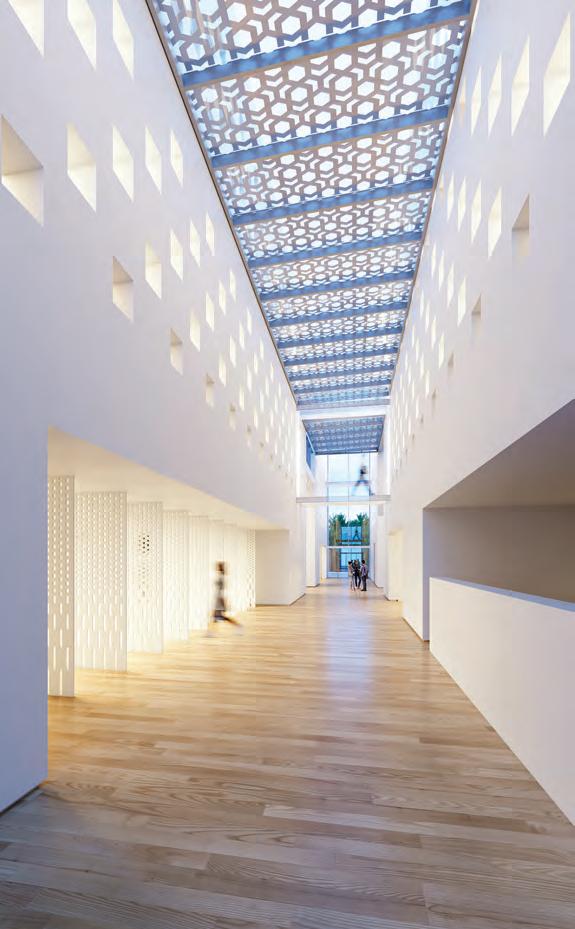 Another facility in Toronto won an Award of Merit: The John Innes Community Recreation Centre, which replaces an existing facility at Moss Park. The design by MJMA presents generous, inclusive spaces that offer paths towards improved well-being for the equitydeserving groups in this underserved neighbourhood. The jury admired the large windows included in the raised basketball court, the natural light throughout, and the visible structure. “This is a mass timber building, which I thought was impressive, especially in the swimming pool,” says Weisz.