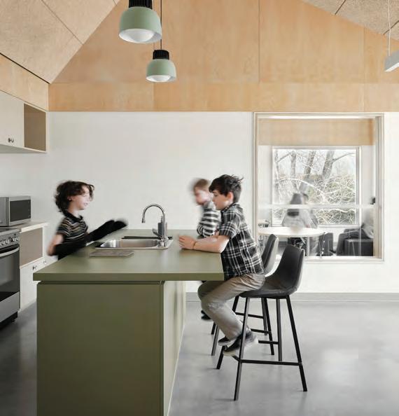 OPPOSITE TOP Trail’s Edge, a cottage in Whistler, BC, by Openspace Architecture, embraces its forested site. OPPOSITE BOTTOM Designed by AIRstudio with Birmingham and Wood, East Georgia Flats is a ninestorey tower with 28 affordable units. Floor-to-ceiling windows and balcony doors provide generous daylight and natural ventilation to the compact units.