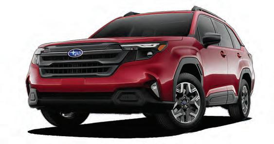 Subaru’s rugged compact SUV enters its sixth generation for the 2025 model year, bringing a beefier design, a new 11.6-inch infotainment screen with wireless Apple CarPlay and Android Auto, and a newlyavailable wireless charging pad. The 2025 Forester also includes improved safety technology such as the latest Subaru EyeSight system with a new wide-angle mono camera lens, which is standard on all trims, and a Subaru-first emergency stop assist feature that will bring the vehicle to a halt out of harm’s way if the driver becomes unresponsive. This is on top of the brand’s standard all-wheel drive (AWD). Pricing for the Convenience trim starts at $36,174, fees in.