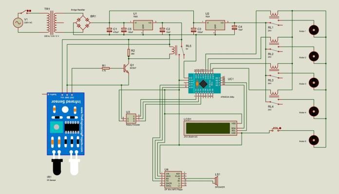 Inidlecondition,thesystemremainsinsleepmode.When a glass is placed on the holder, an IR sensor detects its presence and activates the relay, powering the entire circuit.AnLCDgreetstheuserandaDFMiniplayerplaysa welcome audio clip. The LCD then prompts fluid selection startingfromFLUID1.Theusercanrotatearotaryencoder to select the desired quantity (e.g., 60 ml) and press the encodertoconfirmandmovetothenextfluid.Thisprocess continuesuptoFLUID4.