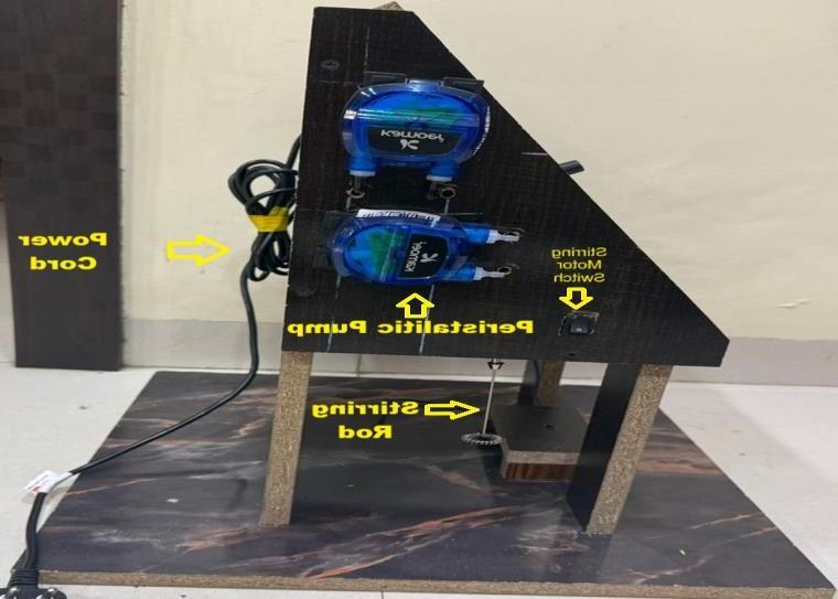 Based on the specifications of the peristaltic pump, which has a flow rate of 560 ml/min , the system is expected to dispensefluids accuratelyand efficiently withina rangeof smalltomoderatevolumes.