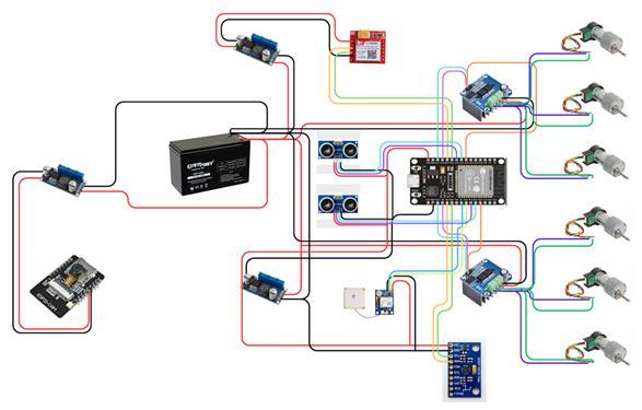 Eachwheelispoweredbyahigh-torqueJohnsonDC motor(12V,300RPM)controlledbyBTS7960motor drivers, ensuring smooth speed adjustments and torqueefficiency.