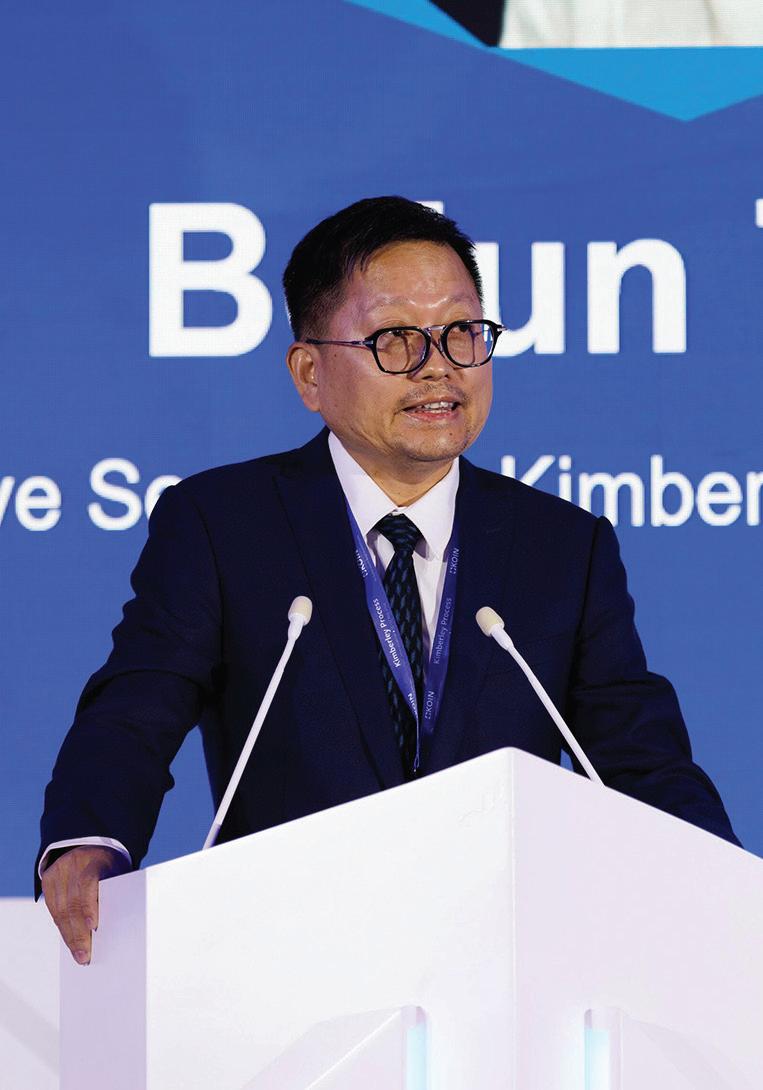 (Above): The beginning of a new era. The KP’s first Executive Secretary, Bojun Tang, addressing the KP Intersessional in Dubai, UAE, in May 2024. (Photo credit: Kimberley Process)