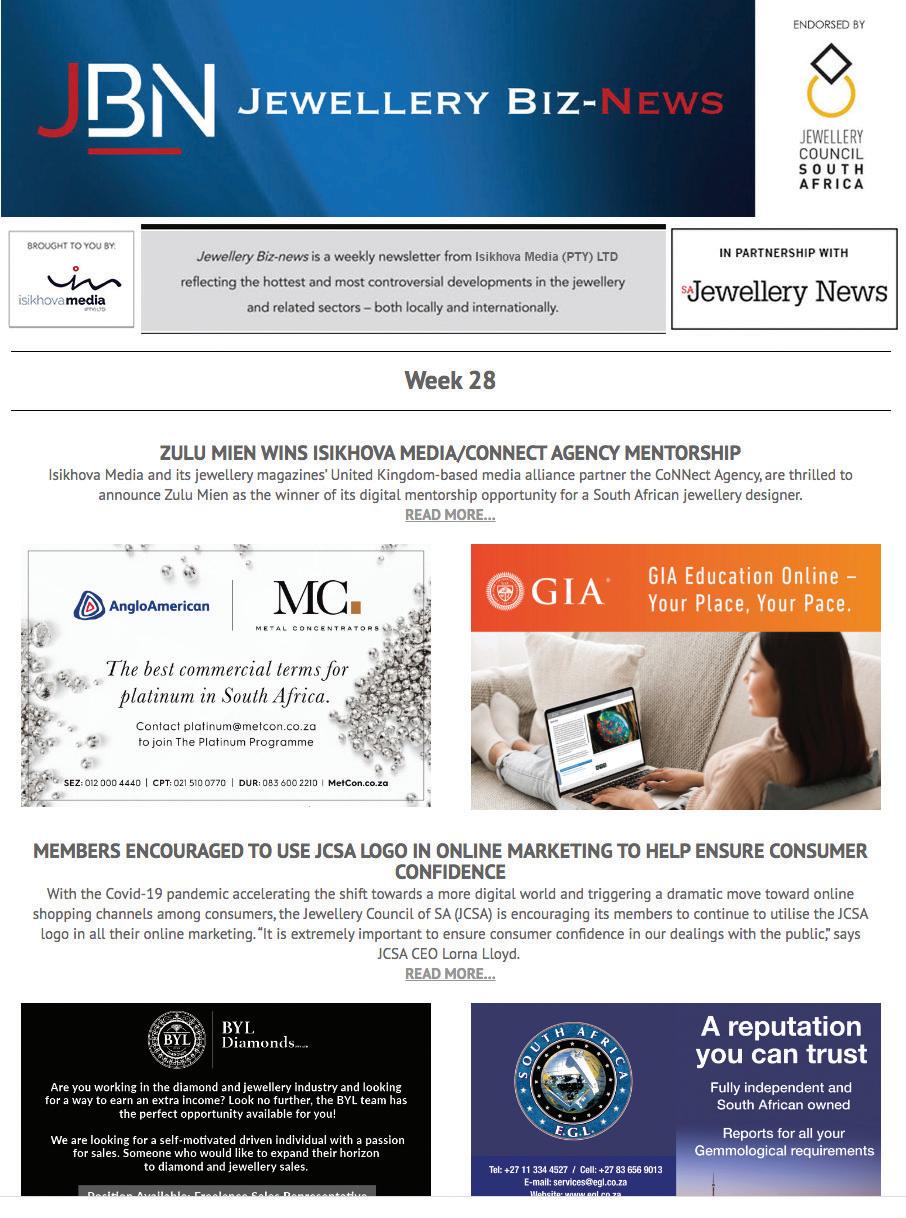 SA Jewellery News is published by: Isikhova Media (Pty) Ltd, Physical: 10th Floor, Metal Box, 25 Owl Street, Milpark, Johannesburg, South Africa.
