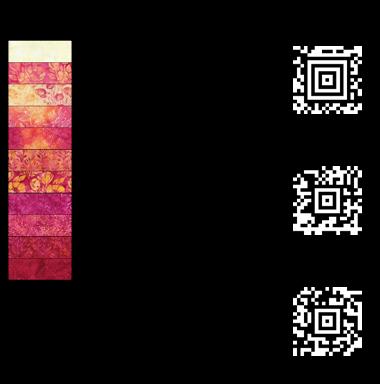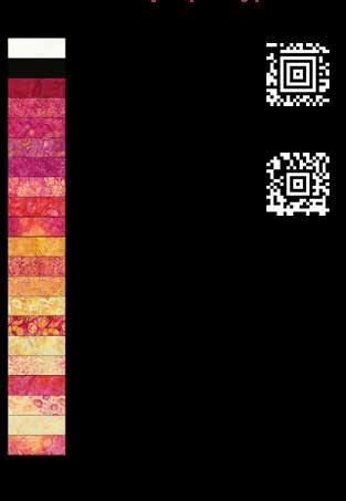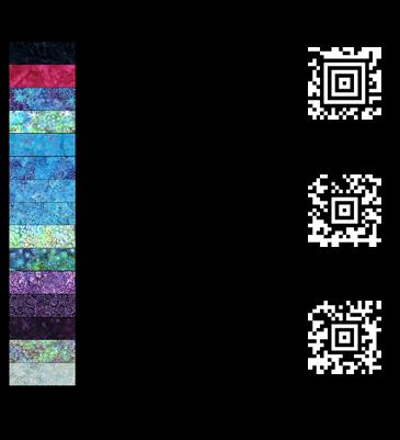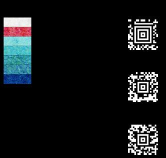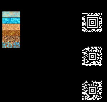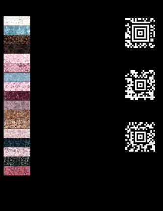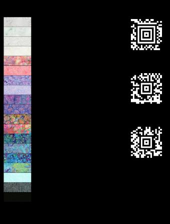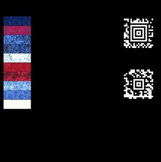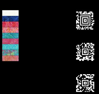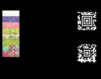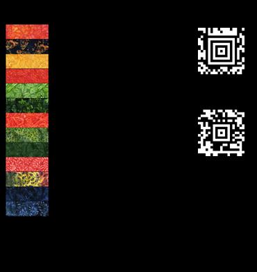 “Order All Fabrics” QR code will order all of the fabrics in the chart to meet the yardage requirements for the number of kits the shop would like; the shop will be given the option to include or exclude Backing and Binding fabrics. If a Backing or Binding fabric is a SKU that has been repeated elsewhere in the chart, a second bolt will be placed on order. Yardages will not be added together. Chart calculations are made with 11 yard and 14 yard bolts to account for varying bolt sizes. Large continuous cuts may require additional bolts.