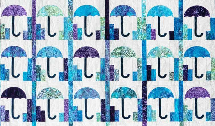 “Get ready for the rain with these beautiful umbrella blocks in Bumbershoots! Appliqué on the machine and introduce thread embellishments or appliqué by hand and teach points and curves. This project is the perfect opportunity to make use of a fabulous precut Stack and get ready to cuddle up and watch the rain.”
