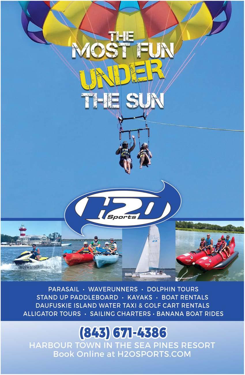 The Harbour Town Yacht Basin offers yearround pri ate fishing charters that are led y the most experienced fishing captains on Hilton Head Island. Just 10 minutes from the Atlantic Ocean, charters range from 3-hour inshore excursions to 8-hour offshore excursions. All items are provided, and catch will be cleaned at the docks. Reservations required. 149 Lighthouse Rd. For reservations and more information, call (843) 363-8335 or visit www. seapines.com/experiences/marina