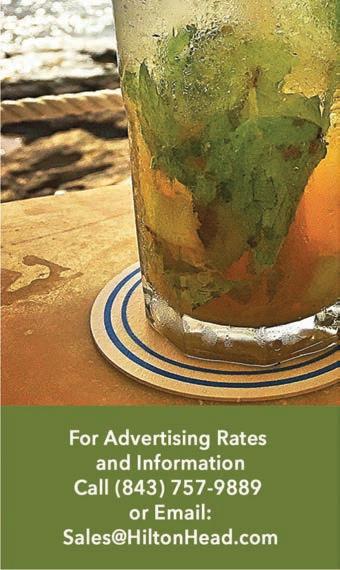 FEATURES 10 Island Flavors 11 Island Calendar Activities and Events 14 Hilton Head History 16 Island Parks 18 Island Beaches 22 Island Style 26 Horoscope – March 28 Shopping Hot Spots 30 Highlights – March 32 Recreational Pathways Guide 44 The Majestic Great Blue Heron By Anthony R. Savarese, Reel Carolina 46 Island Tides – March 48 In Search of Sheepies By Capt. Miles Altman, Bayrunner Fishing Charters 50 What I’ve Learned from Golfing Greats at the RBC Heritage Tournament By Doug Weaver, Palmetto Dunes Oceanfront Resort 54 Island Trails and Walking Paths 56 A Day on the Water 62 Events Puzzle By Jo Emery DEPARTMENTS 6 Welcome 9 Dining & Lounges 17 Arts & Services 20 Accommodations 22 Shopping 34 Activities 52 Puzzle Answer 58 Directory of Advertisers 60 Map of Hilton Head Island CONTENTS MARCH 2023 / 50TH YEAR / #1