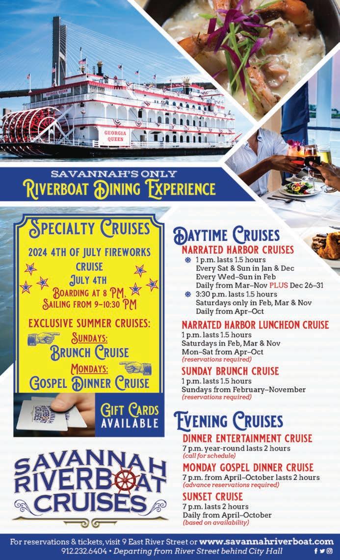46. Savannah Riverboat Cruises – Visit website for information ____ to purchase tickets