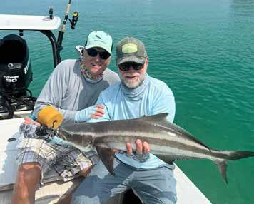 activity or “breaking” fish to find albies and mackerel. Cobia and tripletail may be found around crab trap floats; however, I’ve seen cobia swimming with tarpon schools before. Medium spinning tackle and a DOA Shrimp or CAL jig will get the job done for all of them, although your tarpon tackle would also work well for a big cobia. An 8 or 9-weight fly rod with a floating or clear sink tip fly line is adequate to catch everything except a big cobia, in which case your 12-weight tarpon fly tackle will work
