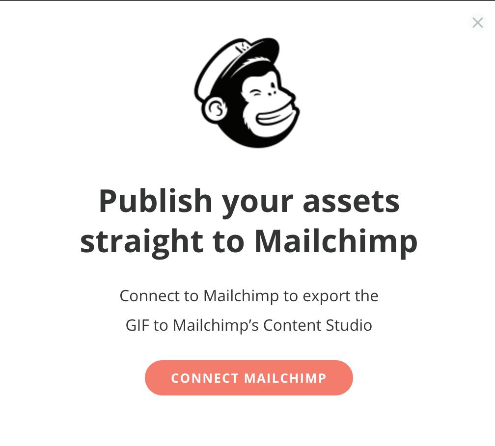 Once you’ve created your emailready GIF, click the yellow “Export to Mailchimp” button in the upper right corner. Click “Connect Mailchimp” in the pop-up window, and input your Mailchimp sign-in credentials.