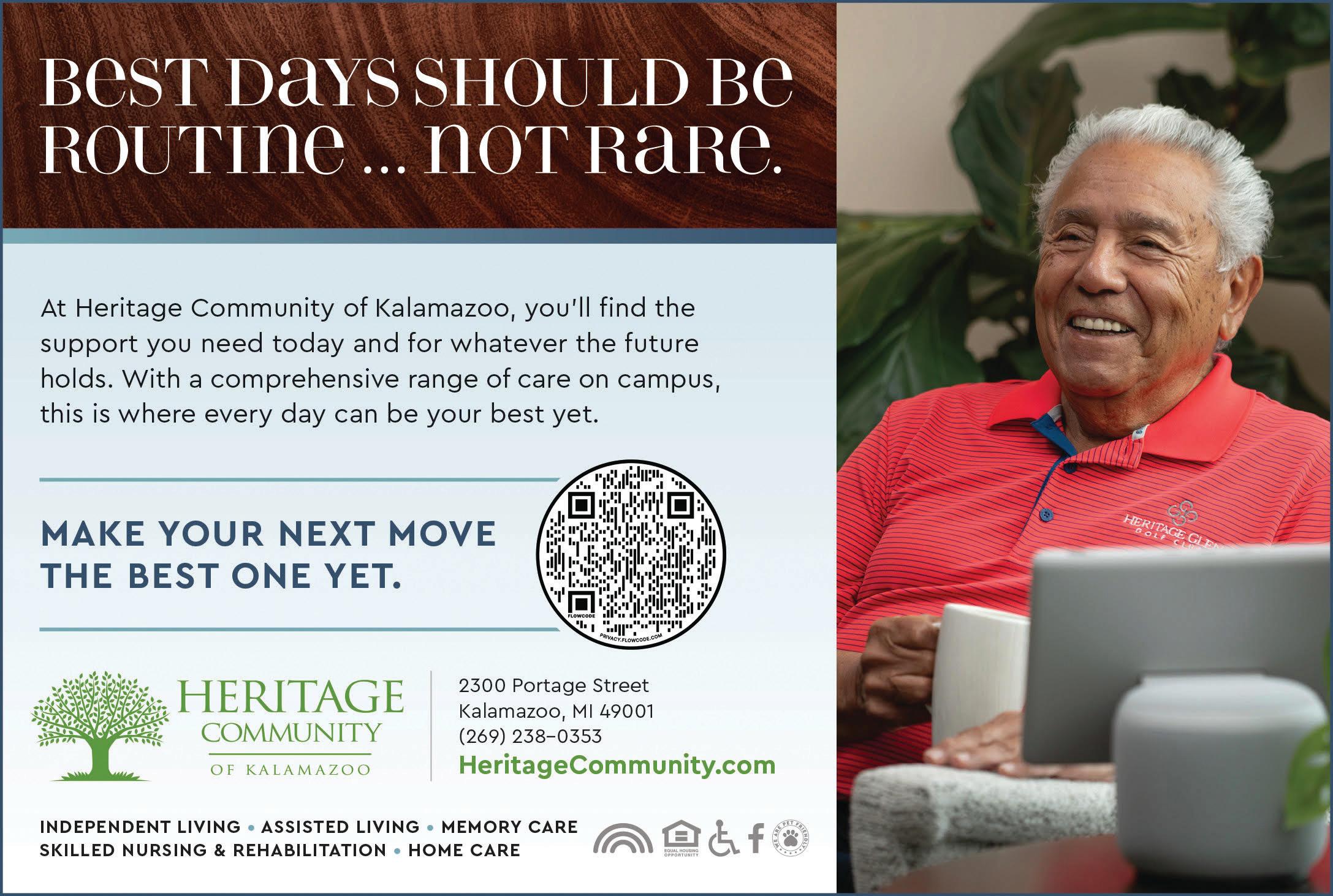 The staff at Encore welcomes written comments from readers, and articles and poems for submission with no obligation to print or return them. To learn more about us or to comment, visit encorekalamazoo.com. Encore subscription rates: one year $36, two years $70. Current single issue and newsstand $4, $10 by mail. Back issues $6, $12 by mail. Advertising rates on request. Closing date for space is 28 days prior to publication date. Final date for print–ready copy is 21 days prior to publication date.