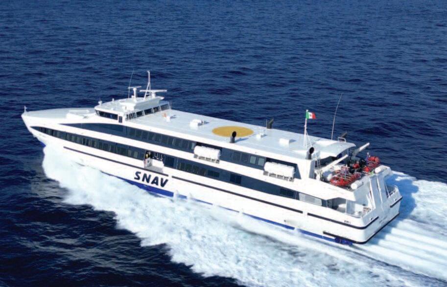 T h i s y e a r S N A V l a u n c h e d a fleet modernization programme with the introduction in June of the first HSC of the Sirius series, an enhancement that will continue in the coming months with the arrival of a sister unit These investments have been made with the aim of providing an increasingly high-quality service and reducing the environmental impact that vessels have on the sea and the land SNAV will focus on new lines on both short and long-haul services, opening 2025 bookings in October and presen-
