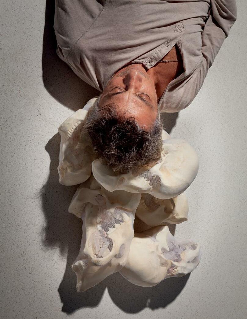 reinventada; reinstaurar o corpo na escultura – o corpo é a escultura e vice-versa. Toda obra persegue a ideia obsessiva do nu, desdobrando-se a cada momento, a cada trabalho. Trata-se da cena erótica primordial de Tunga, resumida na frase de Georges Bataille: “A ação decisiva é o desnudamento”.