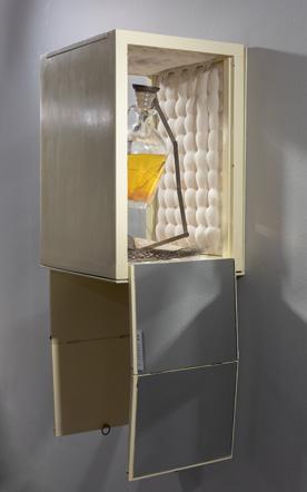 Não lhe interessava, ou interessava pouco, o tão influente na época ready -made , mas, sim, os trabalhos menores de Duchamp. Aqueles menos conheci dos, pequenos objetos “surrealistas” dos quais Tunga se aproximava e que, provavelmente, sugeririam a transição para a tridimensionalidade das obras apresentadas na sua segunda exposição individual, Ar do Corpo (no MAM Rio), na qual o título de uma delas, Objeto do Conhecimento Infantil (1974), poderia bem servir para todas as outras. Nessa exposição estamos um passo além dos fluxos inconscientes da primeira, no estágio posterior da apreensão da tridi mensionalidade dos objetos, que mais tarde o levaria à escultura. Agora a ação é tátil, da ordem da descoberta do objeto (do desejo); dos desenhos para esses insólitos “brinquedos” perversos – é o que sugere o título de um deles, Eros e o Pensamento Positivo (1974) –, estamos um grau acima e exterior da imaginação visual infantil. Objetos um tanto excêntricos, enigmáticos, plenos de possíveis descobertas reveladoras do mundo do erotismo polimórfico que, de agora em diante, vai se mani festar na escolha e no uso dos mate riais; inicialmente feltro e chumbo, ambos com uma decisiva importância ao longo da obra.