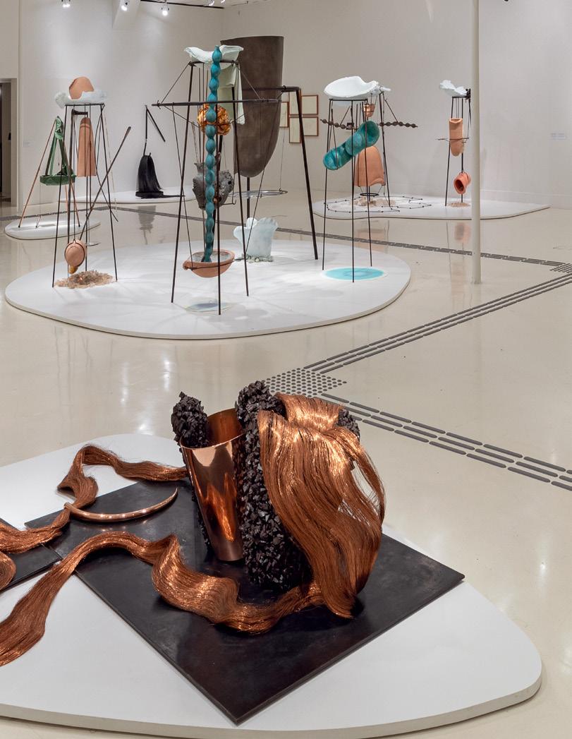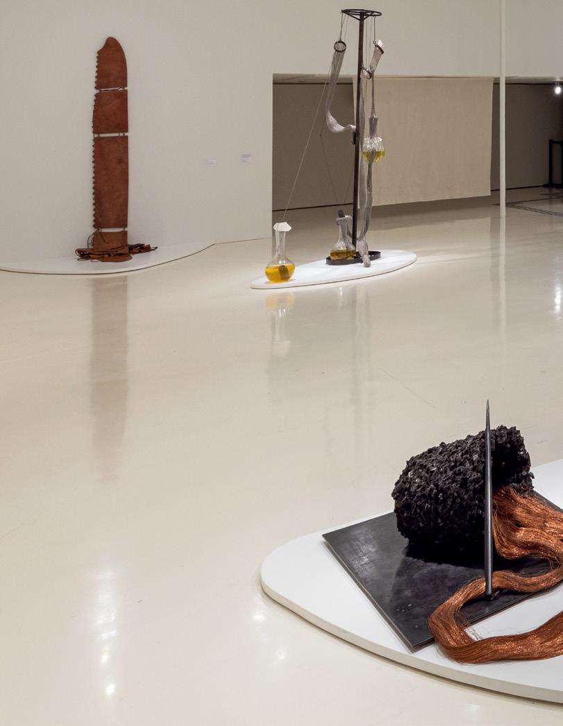 Tunga: conjunções magnéticas enfatiza a interação meta bólica, em constante dinâmica e mutação, entre mídias e materiais que se apresentam ao longo de quase meio século, característica fundamental de Tunga. E percorre sua exten são num conjunto de trabalhos que vão do início ao fim de sua obra e vice-versa, dobrando-se sobre si mesmo em cada um e em todos os seus momentos.