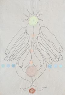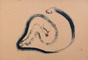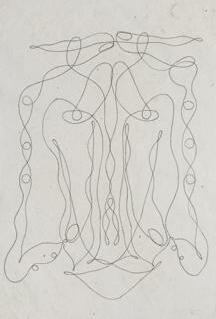 desinibida, indicada no sugestivo título da exposição – audacioso, provocante, intrigante para uma mostra de dese nhos abstratos tão intimistas, quase esboços inacabados do que propria mente desenhos. Alguns minúsculos, tendendo mais à invisibilidade do que a se dar a ver, como se nos obrigassem a nos aproximarmos com uma lupa para dar conta da sua frágil e delicada aparência, apenas imersa e diluída no papel, vindos de um fluxo ainda inominado, primeiras emanações de uma energia vital transbordante. Tão intrigantes figuras que recordam, por afinidade, La mariée da cena erótica de Le grand verre , ou La mariée mise à nu par ses célibataires, même 1, de Marcel Duchamp (1887-1968), tão admirada por Tunga. É para aí que se sentia atraído, para o “outro” Duchamp, aquele da imagérie erótica não literal, insinuada por figuras desprovidas de um apelo sensual do senso comum – cosa mentale , poderia se dizer. Portanto, são desenhos já informados de uma distinta genealogia