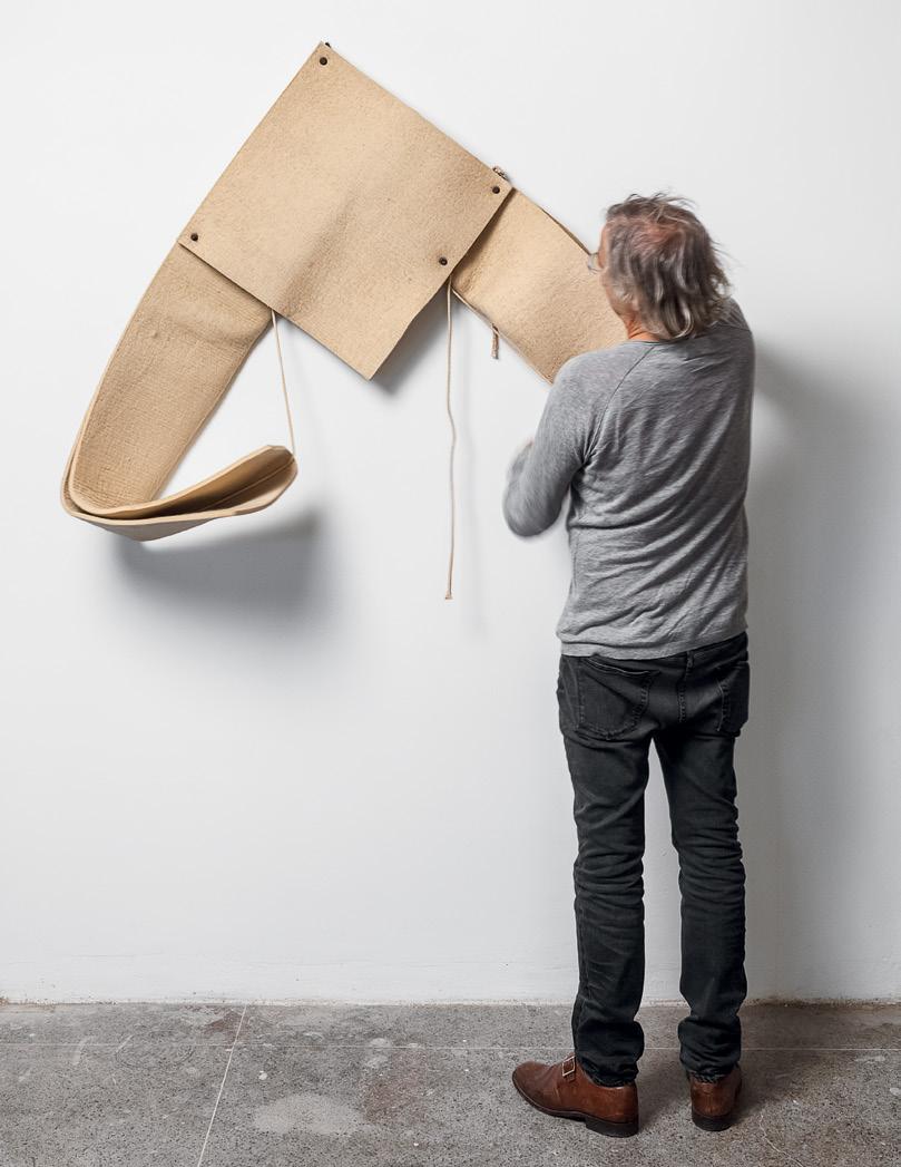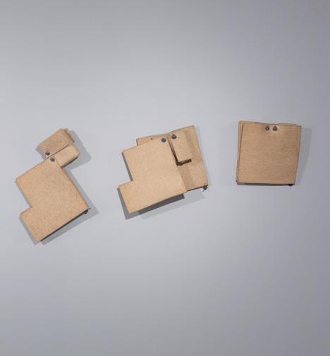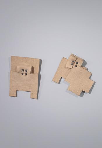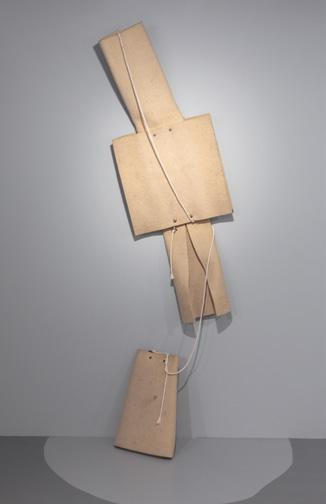 Suas primeiras esculturas já indica vam uma prática divergente, hete rodoxa, mas ainda assim próxima a outras da arte contemporânea. Não foi, por exemplo, o único a usar o feltro. Joseph Beuys (1921-1986) e Robert Morris (1931-2018), entre outros artis tas, também exploraram, de maneira diversa, o caráter tátil, flexível, anties cultural e orgânico desse material. Diferentemente deles, articulando a matéria mole do feltro a esquemas geométricos “duros”, Tunga realizou suas primeiras esculturas, os Albinos (1982) (p. 130 | img. 120 a 122), corpos recortados no feltro e remontados por meio de parafusos e cordões em diver sas variações. Neles a oposição entre a geometria estruturada das formas e a matéria flexível do feltro sugeria uma possível tensão e reação do inanimado em reivindicar-se como coisa viva –fenômeno semelhante aos Bichos de Lygia Clark (1920-1988). Era como se os cordões tensionassem a pureza geomé trica e o plano retorcido sugerisse um volume aprisionado em uma posição na qual o “corpo” tomava forma. Não é sugestivo que o branco do feltro recor dasse os nus das esculturas clássicas gregas? Aí se iniciava uma profunda ligação de Tunga com a matéria, ou as matérias; serão muitas aquelas que vão identificar, de agora em diante e à primeira vista, um trabalho seu.
