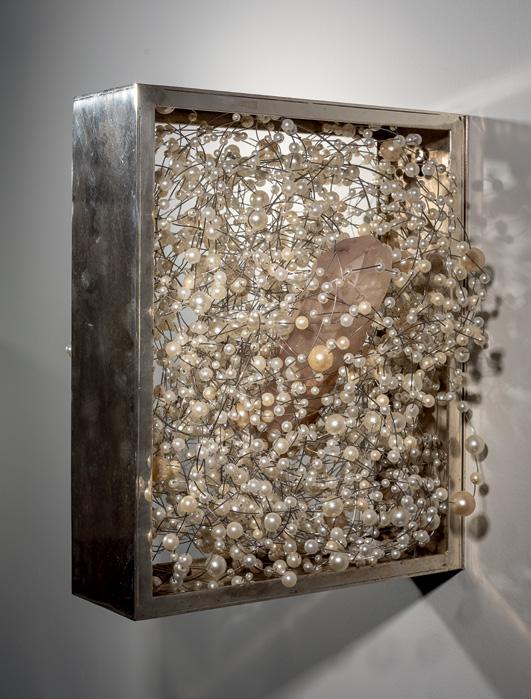 variações homotéticas indistintas na obra de Tunga. Na seleção criteriosa dos materiais, brutos e refinados, na esme rada e meticulosa execução, acentua-se um programa deliberado que dá à obra autoridade, relevância material e o desejo de restaurar certa magnificência à arte contemporânea. Daí a recusa à unilateralidade conceitual e à banalidade decorrentes muitas vezes do ready-made; e, por outro lado, a busca de uma mitolo gia afim e da grandeza do Le grand verre duchampiano; a mesma vasta e intrin cada narrativa que vai ligar um trabalho ao outro, acrescentando a cada um deles uma nova e ampliada versão.