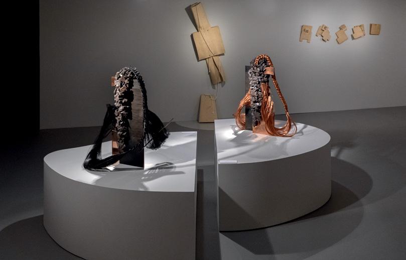 Os cabelos continuam, perseguem o imaginário, pressionam com a força e a insistência do fetiche. Tal processo intrincado de comunicação entre as coisas, o trabalho apresenta literal mente muitas vezes e, em primeiro lugar, como Trança (1981). O entrelaça mento se repete de tranças em tranças, de dimensões e formatos diferentes, tal como a variação dos penteados, estes também – e por que não – escul turas. Tranças que supõem um escalpo, o corte violento do objeto-fetiche.