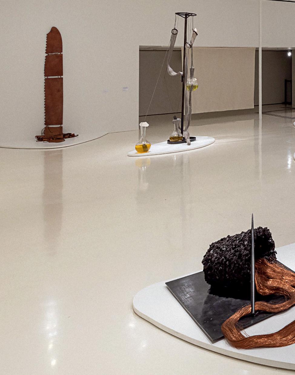 O espaço expositivo traz de maneira abrangente os momen tos mais significativos da trajetória do artista, sem qualquer tipo de hierarquia ou cronologia, fiel ao seu pensamento contínuo e circular, sempre se ampliando mais e mais. Ao apresentar a amplitude da obra em consonância com sua poética plástica, inspirada no conceito de “instauração” por ele proposto para as suas “instalações performáticas”, Tunga: conjunções magnéticas é uma exposição que