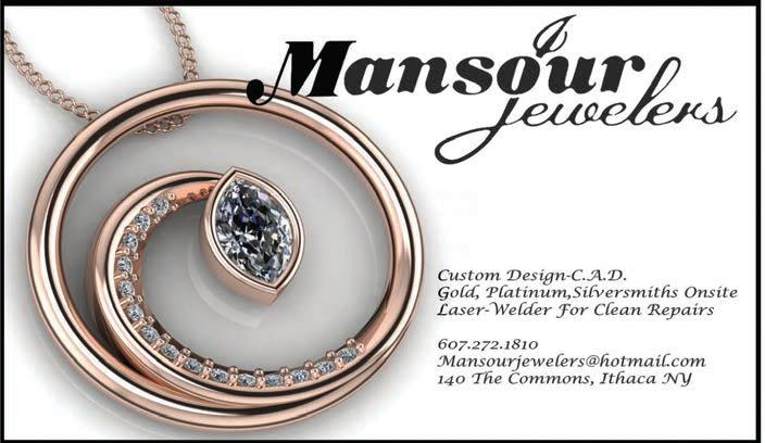 Enjoy Indian Cuisine With Us! Order online: NewDelhiDiamonds.com Call for takeout: 607-272-1003 • 106 W. Green St. • 607-272-4508 • NewDelhi Diamond’s No dine in. Order takeout by phone. Delivery through Doordash and IthacaToGo. Mon-Sun: 11:30-3:00 p.m. Dinner: 4:30-9:00 p.m. Openfortakeout! Ithaca Piano Rebuilders (607) 272-6547 • 310 4th St., Ithaca (Off Hancock St., 2 blocks from Rt. 13) PIANOS • Rebuilt • Sold • Reconditioned • Moved • Bought • Tuned Complete rebuilding services No job too big or too small. Call us. 950 Danby Rd. Suite 26 • South Hill Business Park, Ithaca, NY NEW LOCATION 435 W. MLK St., Ithaca NY 607-272-AUTO (2886) service@dianesautorepari.com Tireside Chat You don’t have to be a Roads Scholar to know that Ithaca winters are hard on your car or truck. When you do need help with tires, suspension work, shocks/struts and alignment issues, come see the friendly folks at Diane’s Downtown Automotive. T S F
