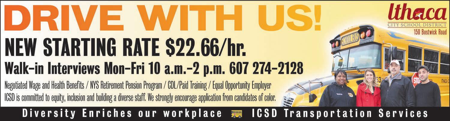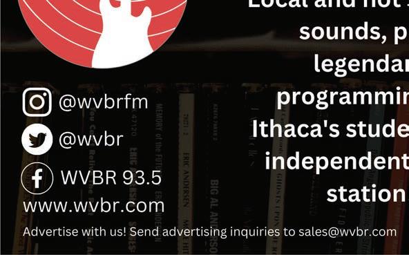 All rights reserved. Events are listed free of charge in TimesTable. All copy must be received by Friday at noon. The Ithaca Times is available free of charge from various locations around Ithaca. Additional copies may be purchased from the Ithaca Times o ces for $1. SUBSCRIPTIONS: $89 one year. Include check or money order and mail to the Ithaca Times, PO Box 27, Ithaca, NY 14851. ADVERTISING: Deadlines are Monday 5 p.m. for display, Tuesday at noon for classi ed. Advertisers should check their ad on publication. The Ithaca Times will not be liable for failure to publish an ad, for typographical error, or errors in publication except to the extent of the cost of the space in which the actual error appeared in the rst insertion. The publisher reserves the right to refuse advertising for any reason and to alter advertising copy or graphics deemed unacceptable for publication.