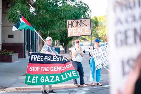 calling for passing drivers to honk in support of their cause. There were four speakers, including local activist Mona Sulzman, who emphasized that individuals must do whatever they can do for the relief and liberation of the Palestinian state. Additionally, she underscored the importance of organizing.
