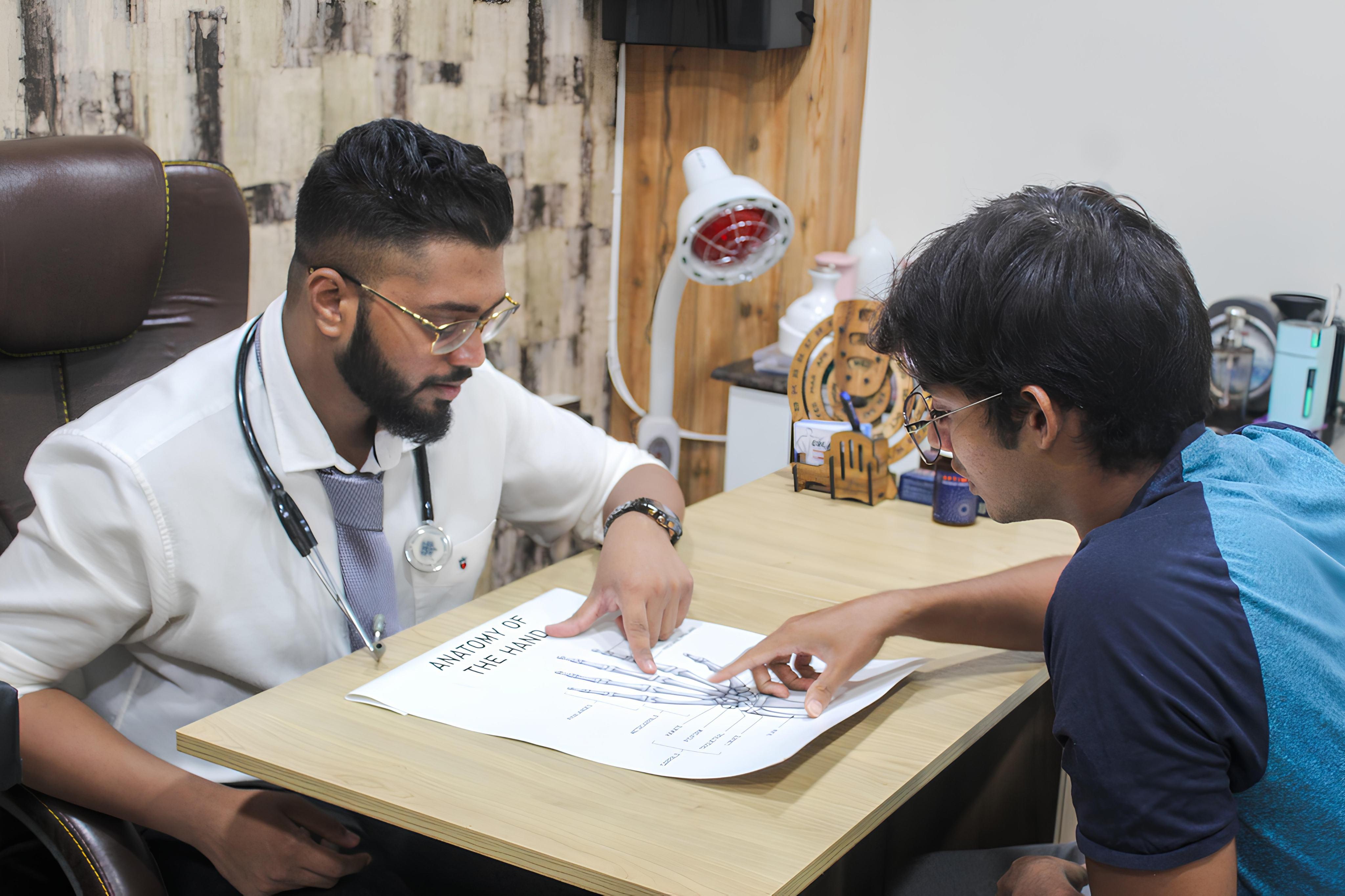 Dr. Abishek educates a patient using a diagram for better understanding