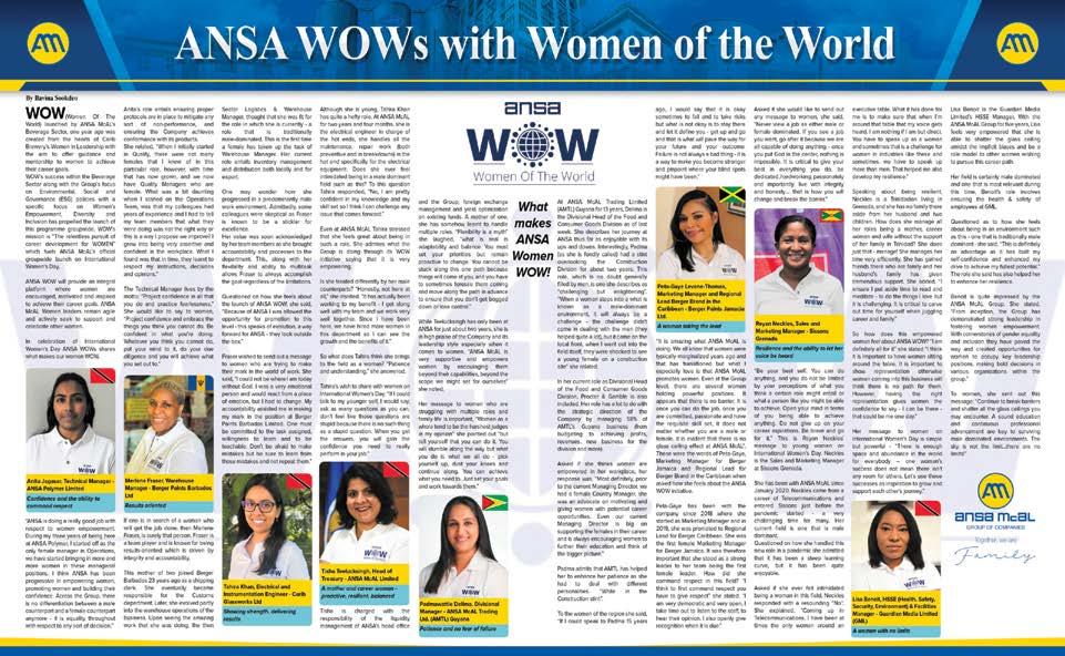 • 2021: ANSA McAL Chemicals Limited (AMCL) is the sole Chlor-Alkali producer in the Englishspeaking Caribbean and a key supplier of liquid chlorine to the Water and Sewage Authority of Trinidad and Tobago (WASA). ANSA Chemicals Jamaica Limited (ACJL), a subsidiary of AMCL, celebrated its first full year of operation of the chlorine transfilling hub in Jamaica.