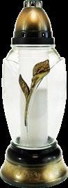 Znicz szklany z kalią czas palenia; 43 h wysokość: 30 cm kolor: srebrny, złoty