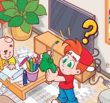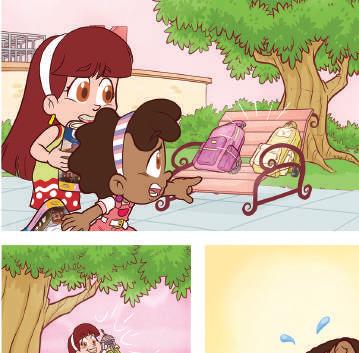 Um bom amigo ajuda o outro. Megui, Biel e Izak estão com alguns problemas. Faz um círculo à volta do que está errado.