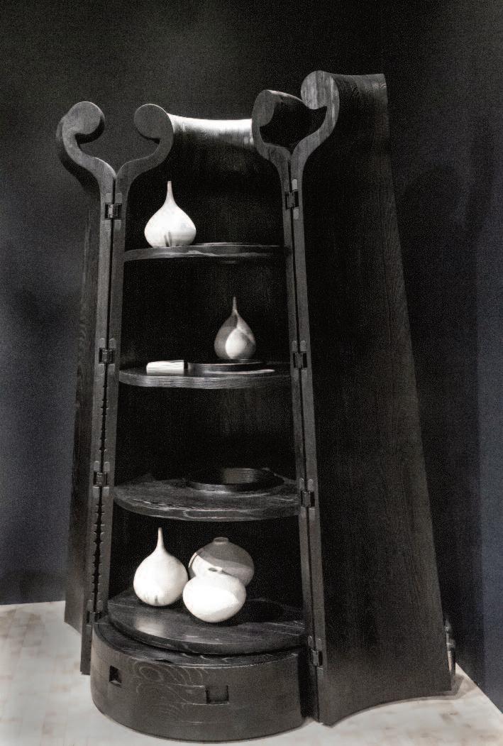 On the occasion of Nomad St Moritz, Volumnia presented a dialogue bet ween contemporar y and historical design Michele De Lucchi's wooden sculptures met the works of Mario Ceroli, Gabriella Crespi,